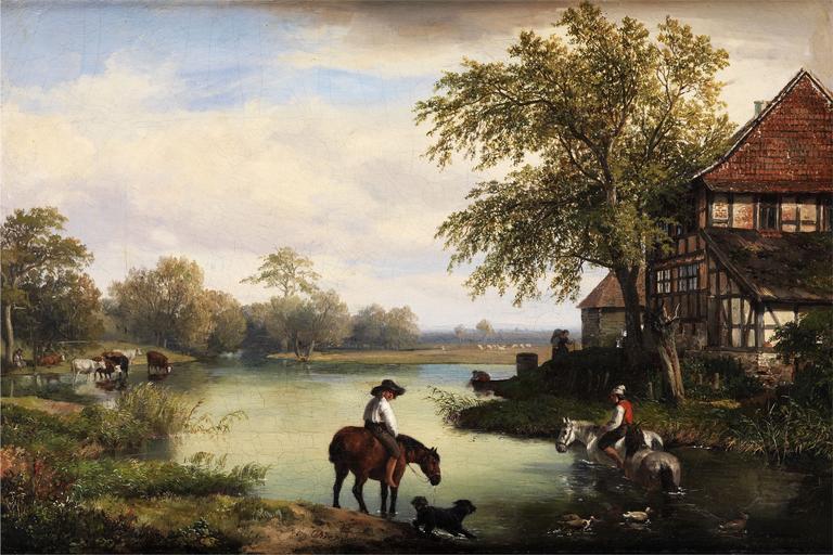 Keywords: Heinrich Brandes - Reiter am Fluss.jpg Artwork Creator Heinrich Brandes probably 1850 oil canvas cm 30 42 5 object history credit line Brandes ~ lower center signature accession number 1 http //www schmidt-auktionen de/12_katalog_online php nr 28 mode k kuenstler 4584 Schmidt Kunstauktionen Dresden 04 Juni 2011 Los 07<br/>2 http //www auktion-bergmann de/ufItemInfo aspx a_id 97 i_id 293342 s_id 208 Auktionshaus Bergmann Erlangen 23 Okt 2010 Los 428<br/>3 https //www hampel-auctions com/archive-catalogue-detail html a 98 s 414 c 1380 Hampel Auktionen München 26 Sept 2014 Los 1380 PD-old-100 Heinrich Brandes Landscape paintings of Germany 1850 paintings 1850s landscape paintings Images by Schmidt Kunstauktionen Images from Auktionshaus Bergmann Images from Hampel Auctions |