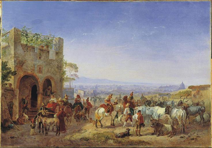 Keywords: Heinrich Bürkel Ochsenhaendler-an-Porta-San-Paolo.jpeg Artwork Creator Johann Heinrich Bürkel Ochsenhändler vor der Porta San Paolo bei Rom 1835 Oil on canvas Institution Staatsgalerie Stuttgart http //www heinrich-buerkel de/presse html PD-old-100 Other versions 1835 paintings Paintings in the Staatsgalerie Stuttgart Heinrich Bürkel |