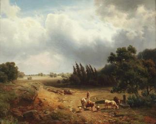 View Original: | Heinrich_Höfer_-_Eine_bewaldete_Landschaft_mit_Hirte_und_Kühen.jpg (3200x2544) | |||