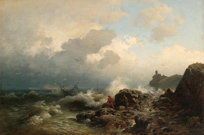 Keywords: Heinrich Ludwig Frische - Fischer an einem felsigen Ufer.jpg Artwork Heinrich Ludwig Frische 1831-1901 de Fischer an einem felsigen Ufer oil canvas cm 32 46 5 object history credit line signed lower left accession number http //www sothebys com/de/auctions/ecatalogue/2007/an-important-private-collection-from-hanover-am1020/lot 167 html Sotheby's PD-old-auto-1923 1903 Heinrich Ludwig Frische Fishermen in art Oil paintings of seascapes 19th-century landscape paintings Images from Sotheby's |