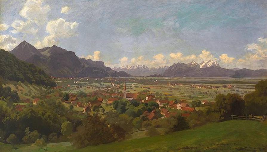 Keywords: Heitinger Dornbirn 1883.jpg Blick von der Parzelle Knie im Stadtteil Haselstauden auf Dornbirn und das Rheintal mit Säntismassiv oil on canvas 46 x 77 cm zeller de 1883 Paul Heitinger 1841-1920 47 26 05 52 N 9 45 43 31 E PD-art Remote views of Säntis Alpine Rhine Valley 1883 paintings History of Dornbirn Haselstauden Paul Heitinger Images from Auktionshaus Zeller |