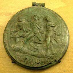 Keywords: Hektor Paris Kassandra Louvre Br1835.jpg Paris seeking refuge on the altar is recognized by Hector and Cassandra who threatened it Etruscan box mirror bronze 3rd century BC Pâris réfugié sur l'hôtel se faisant reconnaître par Hector et Cassandre qui le menaçaient Miroir étrusque à boîte bronze IIIe siècle av J -C Museum Louvre Department of Greek Etruscan and Roman Antiquities Denon wing ground floor room 20 object history credit line accession number Br 1835 User Bibi Saint-Pol own work 2007-06-06 other versions <gallery> Image Hektor Paris Kassandra Louvre Br1834 jpg Same scene Br 1834 </gallery> Bronze mirrors Cases Mirror cases Metal Cassandra Hector Paris mythology Etruscan mirrors France Etruscan antiquities in the Louvre - Room 20 3rd-century BC art in France |