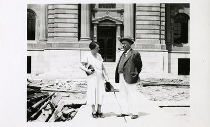 Keywords: smithsonian institution smithsonianinstitution smithsonian institution archives smithsonianinstitutionarchives 2012 women's history month womenshistorymonth women in science womeninscience woman man wife husband couple standing outdoors construction pipe hat chemistry academia government 20th century - early 20thcenturyearly blackandwhite black and white Subject: Davis, Helen Miles 1895-1957 Type: Black-and-white photographs Local number: SIA Acc. 90-105 [SIA2008-5365] Summary: Helen Miles Davis (1895-1957), chemist and wife of Science Service director Watson Davis, is shown (at left) with Canadian botanist and McGill University professor Francis Ernest Lloyd (1868-1947). They are probably standing in front of the National Academy of Sciences building in Washington, D.C Cite as: Acc. 90-105 - Science Service, Records, 1920s-1970s, Smithsonian Institution Archivess Persistent URL:Link to data base record Repository:Smithsonian Institution Archives View more collections from the Smithsonian Institution. Subject: Davis, Helen Miles 1895-1957 Type: Black-and-white photographs Local number: SIA Acc. 90-105 [SIA2008-5365] Summary: Helen Miles Davis (1895-1957), chemist and wife of Science Service director Watson Davis, is shown (at left) with Canadian botanist and McGill University professor Francis Ernest Lloyd (1868-1947). They are probably standing in front of the National Academy of Sciences building in Washington, D.C Cite as: Acc. 90-105 - Science Service, Records, 1920s-1970s, Smithsonian Institution Archivess Persistent URL:Link to data base record Repository:Smithsonian Institution Archives View more collections from the Smithsonian Institution. |