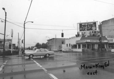 Keywords: blackandwhite monochrome outdoor black and white Still extant restaurant building (date unknown) at 4102 Main Street at King Edward Avenue (SE corner). Photo circa-1980. A diner since 1939, it became Helen's Grill Restaurant in 1961 after purchase by John & Helen Balomenos. Current owners since 1979: George & Dina Tsoromocos. (Note: The Shell gas station on the left was at one time the site of the Windsor Theatre.) [City of Vancouver Archives photo] Still extant restaurant building (date unknown) at 4102 Main Street at King Edward Avenue (SE corner). Photo circa-1980. A diner since 1939, it became Helen's Grill Restaurant in 1961 after purchase by John & Helen Balomenos. Current owners since 1979: George & Dina Tsoromocos. (Note: The Shell gas station on the left was at one time the site of the Windsor Theatre.) [City of Vancouver Archives photo] |