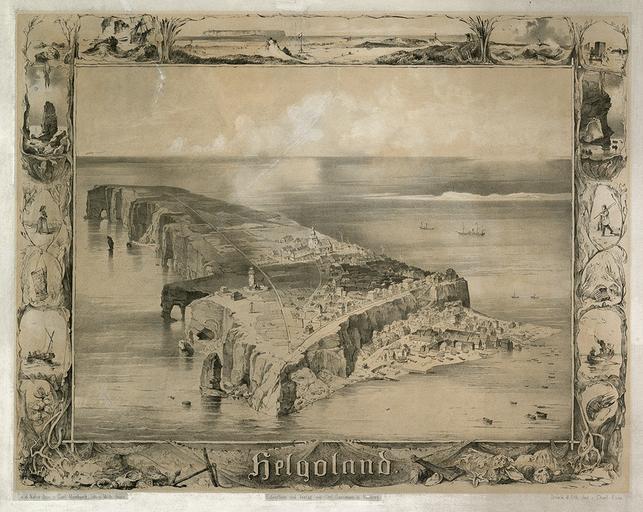 Keywords: Helgoland c1860.jpg Helgoland Gesamtansicht aus der Vogelperspektive umgeben von einer Bordüre mit kleinen auf die Insel bezogenen Detail-Ansichten Kreidelithographie mit gelblichem Tondruck 48 x 60 cm N d Natur gez v Reinhardt lith v Wilh Heuer Druck d lith Inst v Charl Fuchs Eigenthum und Verlag von Carl Gassmann in Hamburg Um 1860 http //www bassenge com Galerie Bassenge ~ 1860 Wilhelm Heuer after Reinhardt PD-old-100 Images from Galerie Bassenge Historical images of Heligoland |