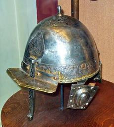 MAKE A MEME View Large Image Helm TGIM.jpg ru Шлем с а сенальным клеймом и деко ативной надписью Ту ция XV-XVI век Сталь; ковка г ави овка и золочение own Лапоть 2010 Armour in the ...