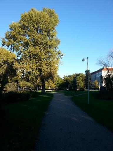 Keywords: helsinki finnish tree nature landscape branches blue sky autumn lawn blue trees green cloudless walk park