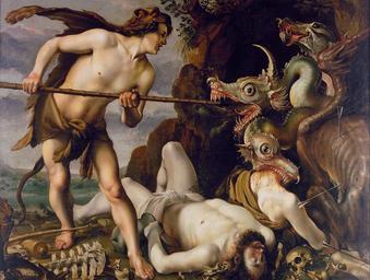 | Keywords: Hendrick Goltzius Cadmus Statens Museum for Kunst 1183.jpg Artwork Creator Hendrick Goltzius LangSwitch Cadmus dræber dragen Cadmus slays the dragon Cadmus tuant le dragon Cadmus verslaat de draak between 1573 1617 Oil on canvas cm 189 248 Museet på Koldinghus Credit line Deposit of the Statens Kunstsamlinger http //www koldinghus dk/Default aspx ID 168 Museet på Koldinghus <br /> 700 http //www koldinghus dk/Default aspx ID 2289 Statens Museum for Kunst inv 1183 Other versions PD-old-100 Cadmus Creatures of Greek mythology Fighting with dragons Paintings of dragons Paintings by Hendrick Goltzius 1573 Furs in art Koldinghus Paintings in Statens Museum for Kunst Skulls in art |