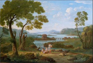 | Keywords: Hendrik Frans van Lint - Classical River landscape with figures and goats before a bridge, waterfall and circular temple.jpg Artwork Creator Hendrik Frans van Lint en Classical River landscape with figures and goats before a bridge waterfall and circular temple 1697-1763 http //www colnaghi co uk/classical-river-landscape-with-figures-and-goats-before-a-bridge-waterfall-and-circular-temple Oil on canvas cm 49 73 accession number object history credit line ` Sold at Colnaghi Old Masters PD-old-100 Hendrik Frans van Lint 18th-century landscape paintings |