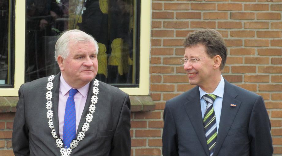 Keywords: Henk Aalderink en Clemens Cornielje.jpg Henk Aalderink links burgemeester van de Nederlandse gemeente Bronckhorst en Clemens Cornielje Commissaris van de Koningin in de provincie Gelderland wachten koningin Beatrix op die een bezoek brengt aan Toldijk own 2013-03-01 Apdency Clemens Cornielje Mayors of the Netherlands VVD politicians March 2013 in the Netherlands Cc-zero |