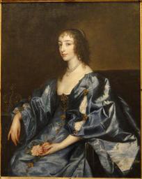 | Keywords: Henrietta Maria, Queen of England, by Anthony van Dyck, c. 1636 - San Diego Museum of Art - DSC06592.JPG Artwork Creator Anthonis van Dyck en Exhibit in the San Diego Museum of Art San Diego California USA This artwork is old enough so that it is in the public domain Photography was permitted in the museum without restriction c 1636 1638 Oil on canvas Institution San Diego Museum of Art own Daderot 2013-02-24 17 14 07 other versions <gallery>HenriettaMariaofFrance02 jpg</gallery> cc-zero Henrietta Maria of France by Anthony van Dyck Flemish paintings in the San Diego Museum of Art 1630s dresses 1630s oil on canvas paintings in the United States Portrait 1630s portrait paintings 17th-century oil portraits of sitting women at three-quarter length 1636 17th-century portrait paintings in the United States 1636 Curly hair in art female Females with blue satin dresses in art 1636 Females with hair with pearl jewellery in art 1636 Females with pearl earrings in art 1636 Females with pearl necklaces in art 1636 Paintings by Anthony van Dyck in the United States Portrait paintings of sitting women with arms resting on tables 1636 Portrait paintings of women holding flowers 1636 Portrait paintings of women sitting in armchairs 1636 Portrait paintings of women with crowns 1636 Uploaded with UploadWizard Women facing left in art |
