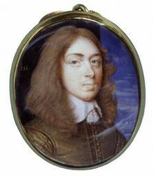 Keywords: miniatures london, st martin's place, wc2 0he londonstmartinsplacewc20he united kingdom unitedkingdom people portrait by John Hoskins,miniature,circa 1655 Henry Capell, 1st Baron Capell of Tewkesbury KB, PC (6 March 1638 – 30 May 1696) was a seventeenth century English peer. Born in Hadham Parva, Hertfordshire, he was the son of the 1st Baron Capell of Hadham and Elizabeth Morrison, and brother of the 1st Earl of Essex. Invested as a Knight of the Order of the Bath on 23 April 1661, he was a member of the Irish Privy Council from April 1673 to March 1684/85. Capell was also First Lord of the Admiralty between February 1679 to February 1681, and Lord of the Treasury and Member of Parliament (MP) for Cockermouth between 1689 and 1690. A member of the English Privy Council from 22 April 1679 to 31 January 1679/80, he was invested again on 14 February 1688/89. On 11 April 1692, he was ennobled as Baron Capell of Tewkesbury, in the County of Gloucester. One year later he became Lord Justice of Ireland and in turn a Privy Councillor of Ireland in June 1693. In 1695 and 1696, Capell was finally Lord Deputy of Ireland. He died, aged 58 in Chapelizod, County Dublin and was buried on 8 September 1696 in Hadham, Hertfordshire. On 16 February 1658/59, he married Dorothy Bennet, daughter of Richard Bennet. Their marriage was childless and so his title became extinct with Capell's deaths. by John Hoskins,miniature,circa 1655 Henry Capell, 1st Baron Capell of Tewkesbury KB, PC (6 March 1638 – 30 May 1696) was a seventeenth century English peer. Born in Hadham Parva, Hertfordshire, he was the son of the 1st Baron Capell of Hadham and Elizabeth Morrison, and brother of the 1st Earl of Essex. Invested as a Knight of the Order of the Bath on 23 April 1661, he was a member of the Irish Privy Council from April 1673 to March 1684/85. Capell was also First Lord of the Admiralty between February 1679 to February 1681, and Lord of the Treasury and Member of Parliament (MP) for Cockermouth between 1689 and 1690. A member of the English Privy Council from 22 April 1679 to 31 January 1679/80, he was invested again on 14 February 1688/89. On 11 April 1692, he was ennobled as Baron Capell of Tewkesbury, in the County of Gloucester. One year later he became Lord Justice of Ireland and in turn a Privy Councillor of Ireland in June 1693. In 1695 and 1696, Capell was finally Lord Deputy of Ireland. He died, aged 58 in Chapelizod, County Dublin and was buried on 8 September 1696 in Hadham, Hertfordshire. On 16 February 1658/59, he married Dorothy Bennet, daughter of Richard Bennet. Their marriage was childless and so his title became extinct with Capell's deaths. |