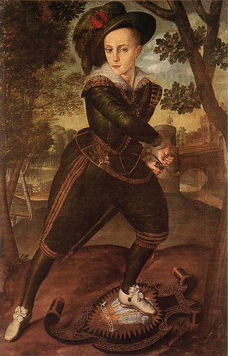 Keywords: stuart english royalty englishroyalty portrait 16th century 16thcentury 17th century 17thcentury scotland united kingdom unitedkingdom britain studio of Isaac Oliver,miniature,circa 1610 Henry Frederick, Prince of Wales (19 February 1594 – 6 November 1612) was the eldest son of King James I & VI and Anne of Denmark. His name comes from grandfathers Henry Stuart, Lord Darnley and Frederick II of Denmark. Prince Henry was widely seen as a bright and promising heir to his father's throne. However, at the age of 18, he predeceased his father when he died of typhoid fever. Subsequently, the heirship to the English and Scottish thrones passed to his younger brother Charles. Many places in the Colony of Virginia were named in honour of Prince Henry before and after his death. He was born at Stirling Castle and became Duke of Rothesay, Earl of Carrick, Baron of Renfrew, Lord of the Isles and Prince and Great Steward of Scotland automatically on his birth. His father placed him in the care of Alexander Erskine, Earl of Mar, and out of the care of the boy's mother, because James worried that the mother's tendency toward Catholicism might affect the son. Although the child's removal caused enormous tension between Anna and James, Henry remained under the care of Mar's family until 1603, when James became King of England and his family moved south.[1] His tutor until he went to England was Sir George Lauder of The Bass, a Privy Counsellor — described as the King's "familiar councillor"[2] — and he was also tutored in music by Alfonso Ferrabosco the younger.The king "much preferred the role of schoolmaster than that of father", and wrote texts for the schooling of his offspring. James directed that Henry's household "should rather imitate a College than a Court",[3] or, as Sir Thomas Chaloner wrote in 1607, His Highness's household [...] was intended by the King for a courtly college or a collegiate court"[4] In 1605, Henry entered Magdalen College, Oxford, where the witty, outgoing, popular young man became interested in sports. His other interests included naval and military affairs, and national issues, about which he often disagreed with his father. He also disapproved with the way his father conducted the royal court, disliked Robert Carr, a favorite of his father, and esteemed Sir Walter Ralegh, wishing him released from the Tower of London.[1] The prince's popularity rose so high that it threatened his father. Relations between the two could be tense and on occasion surfaced in public. At one point, they were hunting near Royston when James I criticized his son for lacking enthusiasm for the chase, and Henry initially moved to strike his father with a cane but rode off. Most of the hunting party then followed the son.[3] "Upright to the point of priggishness, he fined all who swore in his presence", according to Charles Carlton, a biographer of Charles I, who described Henry as an "obdurate Protestant".[3] In addition to the alms box that Henry forced swearers to contribute to, he made sure his household attended church services. His religious views were influenced by the clerics in his household who were largely from a tradition of politicized Calvinism. To his preachers, Henry listened humbly, attentively and regularly to the sermons preached to his household, and once told his chaplain, Richard Milbourne, that he esteemed most the preachers with an attitude that suggested, "Sir, you must hear me diligently: you must have a care to observe what I say."[4] Henry is said to have disliked his younger brother, Charles, and teased him. Yet there is only one surviving anecdote between the two: When Charles was nine years of age, Henry snatched off the hat of a bishop and put it on the younger child's head, then told his younger brother that when he became king he would make Charles Archbishop of Canterbury, and then Charles would have a long robe to hide his ugly rickety legs. Charles stamped on the cap and had to be dragged off in tears. Following his father's accession to the throne of England in 1603, he became automatically Duke of Cornwall, and was invested Prince of Wales and Earl of Chester in 1610, thus uniting the six automatic and two traditional Scottish and English titles held by heirs-apparent to the throne(s) ever since that date. As a young man, Henry showed great promise and was beginning to be active in leadership matters. He was a friend of Sir Walter Ralegh. Among his activities, he was responsible for the reassignment of Sir Thomas Dale to the Virginia Company of London's struggling colony in North America. He died from typhoid fever at the age of 18. (The diagnosis can be made with reasonable certainty from written records of the post-mortem examination.) Henry was buried in Westminster Abbey. Prince Henry's death was widely regarded as a tragedy for the nation, some may consider prophetic. According to Charles Colton, "Few heirs to the English throne have been as widely and deeply mourned as Prince Henry." His body lay in state at St. James's Palace for four weeks as his father collected money for an extravagant funeral on December 7, when over a thousand people walked in the mile-long cortege to Westminster Abbey to hear the two-hour sermon delivered by the Archbishop of Canterbury. As Henry's body was lowered into the ground, his chief servants broke their staves of office at the grave. An insane man ran naked through the mourners, yelling that he was the boy's ghost.[3] Charles immediately fell ill after Henry's death, but was the chief mourner at the funeral, which James I (detesting funerals) refused to attend.[3] Upon his death, all of Henry's automatic titles passed to his younger brother, Charles, who, until then, had lived in Henry's shadow – Charles was created Prince of Wales and Earl of Chester four years later. Charles was not as well-regarded as Henry had been, and after he assumed the throne following the death of his father in 1625 as King Ch