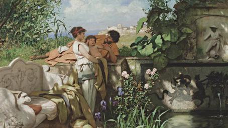 Keywords: Henryk Siemiradzki - By the Fountain.jpg Artwork Creator Henryk Siemiradzki oil on canvas in 26 45 object history exhibition history credit line signed H Siemiradzki accession number http //www sothebys com/en/auctions/ecatalogue/2011/19th-century-european-paintings-l11101/lot 29 html Ancient Roman historical paintings by Henryk Siemiradzki Paintings of fountains People at fountains in art PD-old-auto-1923 1902 |