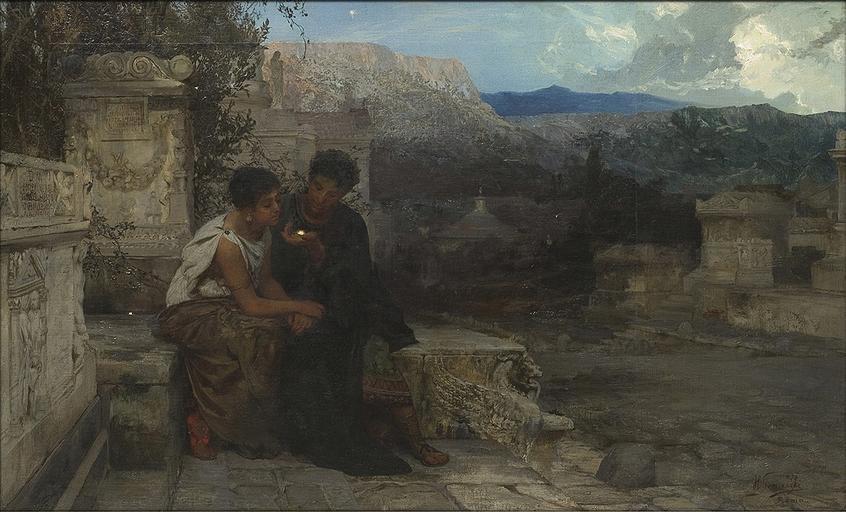 | Keywords: Henryk Siemiradzki - Noc w Pompejach.jpg artwork creator Henryk Siemiradzki title Noc w Pompejach Nacht in Pompeji mit Glühwürmchen Night in Pompei Notturna a Pompei очь в Помпеях ca 1881 oil canvas cm 90 145 5 private collection http //www agraart pl/nowe/object php idd 10843 aid 178 off 0 curr PLN AGRA ART Dom aukcynjy object history credit line sygnowany p d H Siemiradzki / Roma accession number http //artyzm com/artysta php id 602 artyzm com http //www agraart pl/pics/dziela/siem_fram jpg PD-old-100 Ancient Roman historical paintings by Henryk Siemiradzki Pompeii Pompeii in art - Daily life |