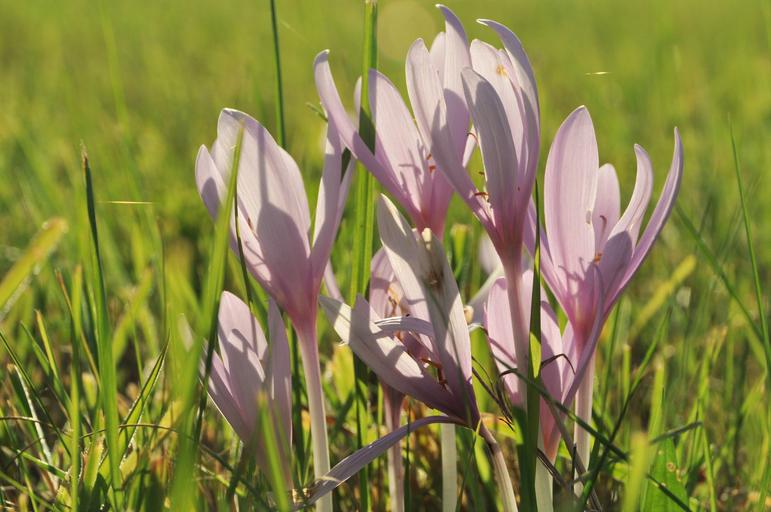 Keywords: herbstzeitlose blossom bloom flower violet autumn bloom meadow poisonous plant light purple back light flower meadow wild flowers