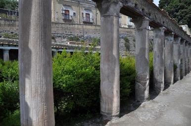 | Keywords: outdoor colonnade architecture column "Located in the shadow of Mount Vesuvius, Herculaneum (Italian: Ercolano) was an ancient Roman town destroyed by volcanic pyroclastic flows in 79 AD. Its ruins are located in the commune of Ercolano, Campania, Italy. It is most famous for having been lost, along with Pompeii, Stabiae, Oplontis and the neighborhood of Monte Bursaccio in Boscoreale, in the eruption of Mount Vesuvius in AD 79 that buried it in superheated pyroclastic material. It is also famous as one of the few ancient cities that can now be seen in almost its original splendor; unlike Pompeii, it was mainly affected by pyroclastic flows, thus preserving the wooden objects such as roof tops, building beams, beds, doors, and even food. Moreover, Herculaneum was a wealthier town than Pompeii, possessing an extraordinary density of fine houses, and far more lavish use of colored marble cladding. The discovery in recent years of some 300 skeletons along the sea shore came as a surprise, as it had been assumed that the town had been evacuated." ~Wikipedia "Located in the shadow of Mount Vesuvius, Herculaneum (Italian: Ercolano) was an ancient Roman town destroyed by volcanic pyroclastic flows in 79 AD. Its ruins are located in the commune of Ercolano, Campania, Italy. It is most famous for having been lost, along with Pompeii, Stabiae, Oplontis and the neighborhood of Monte Bursaccio in Boscoreale, in the eruption of Mount Vesuvius in AD 79 that buried it in superheated pyroclastic material. It is also famous as one of the few ancient cities that can now be seen in almost its original splendor; unlike Pompeii, it was mainly affected by pyroclastic flows, thus preserving the wooden objects such as roof tops, building beams, beds, doors, and even food. Moreover, Herculaneum was a wealthier town than Pompeii, possessing an extraordinary density of fine houses, and far more lavish use of colored marble cladding. The discovery in recent years of some 300 skeletons along the sea shore came as a surprise, as it had been assumed that the town had been evacuated." ~Wikipedia |