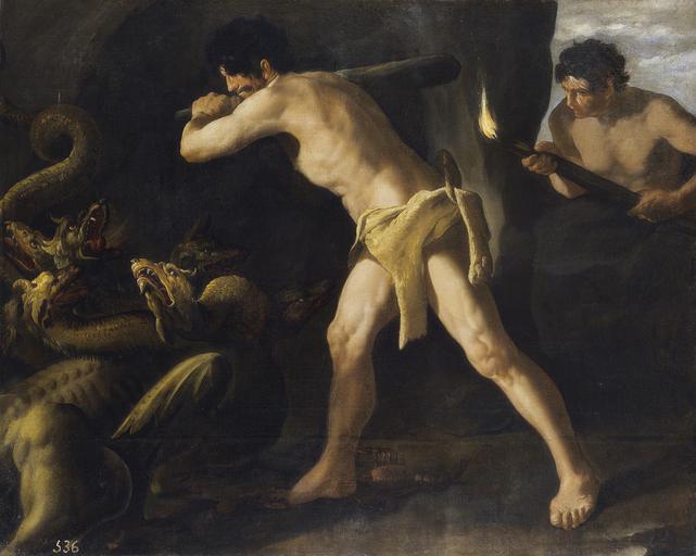 Keywords: Hércules lucha con la hidra de Lerna, por Zurbarán.jpg Artwork Creator Francisco de Zurbarán En esta escena Hércules debe enfrentarse a un animal fabuloso que representa un peligro para los hombres y simboliza los males y los vicios a los que el hijo de Zeus y de Alcmena vence tras probar su astucia y fuerza El mal aparece representado por una sierpe de extraña figura con muchas cabezas a la cual decían hidra y tenía tal naturaleza que por una cabeza de aquellas que le fuere tajada le nacían tres en manera que cuanto más trabajaran en su muerte tanto más ella por su naturaleza multiplicaba su vida Así inicia Enrique de Villena el relato del terrible peligro que representaba la hidra cuyo final habían intentado los habitantes de la pantanosa región de Lerna cerca de Argos donde no había descanso ni paz a causa del dañino monstruo Para resolver esta situación Hércules cubierto con la piel del león de Nemea que ya había matado en el episodio anterior P1243 tuvo que sustituir la fuerza por el ingenio La hidra fue acorralada y destruida por medio del fuego y enterradas luego sus cenizas En sintonía con otros de los cuadros de la serie Zurbarán destaca la poderosa figura de Hércules en el centro de la escena en plena ejecución del castigo al monstruo y fuertemente iluminado frente a la oscuridad que envuelve el fondo De nuevo el pintor se apoyó para resolver la composición en las estampas de Cornelis Cort tomando aspectos de varios episodios de la serie flamenca aunque especialmente de la del mismo tema donde figura también el sobrino del protagonista Iolao Éste apareciendo por la derecha de la escena porta la tea encendida que consumaría la destrucción de la hidra De la misma estampa se toma el cangrejo situado a los pies del héroe -en el grabado asoman además una serie interminable de animales que incluía escorpiones- y de cuya presencia encontramos una explicación en la obra de Baltasar de Victoria quien cuenta que salió un cancro de la Laguna Lerna a dar ayuda a la portentosa Hidra Las principales diferencias con la representación del grabador Cornelis Cort las hallamos en el escenario donde transcurre el episodio cerrado y claustrofóbico en la pintura de Zurbarán muy alejado del exterior luminoso de la propuesta del flamenco Varían también los tipos humanos revestidos en el lienzo de un carácter tosco y popular que quizás pretendía españolizar el mito Las bruñidas cabezas ejecutadas de una manera muy sumaria en relación con el modelado de los cuerpos se destacan por su tono tostado como si estuviéramos ante aldeanos que se hubieran desprendido de su vestimenta para la ocasión Texto extractado de Ruiz L en El Palacio del Rey Planeta Felipe IV y el Buen Retiro Museo Nacional del Prado 2005 p 149 1634 Óleo sobre lienzo cm 136 167 Institution Prado Madrid accession number P01249 object history credit line https //www museodelprado es/coleccion/galeria-on-line/galeria-on-line/obra/lucha-de-hercules-con-la-hidra-de-lerna/ Galería online Museo del Prado PD-old-100 Hercules Fighting with the Lernaean Hydra by Francisco de Zurbarán Uploaded with UploadWizard |