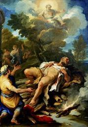 Keywords: Hercules on the pyre by Luca Giordano.jpg El lienzo representa a Hércules personaje clave de la mitilogía griega e hijo de Zeus abrasándose en la pira Hercules on the pyre Creator Luca Giordano Size cm 80 125 circa 1697 1700 Institution Monasterio de San Lorenzo El Escorial Oil on canvas PD-old-100 Unknown Heracles on paintings Paintings by Luca Giordano in the monastery de El Escorial 17th-century paintings in the monastery de El Escorial 1700 paintings 18th-century oil on canvas paintings 1700s mythological paintings Paintings of Greek mythology Mythological figures in nature Mythological paintings in Spain 1700s paintings from Italy 1700s paintings in Spain |