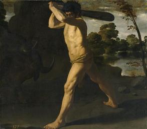 Keywords: Hércules y el toro de Creta, por Zurbarán.jpg Artwork Creator Francisco de Zurbarán Por indicación de Euristeo Hércules acabó con el Minotauro un peligroso y feroz animal que provocaba desolación y muerte en Creta El Minotauro había nacido de la unión entre Pasifa mujer del rey Minos y un hermoso toro cuyo sacrificio ritual había solicitado Poseidón al rey de Creta Este prefirió sacrificar a otro animal despertando por ello la ira del dios que se vengó provocando la unión carnal de su mujer y el toro y el consiguiente nacimiento del Minotauro Hércules persiguió y venció al extraordinario animal y lo llevó a Micenas Como ya sugirió Rosa López Torrijos al igual que en las luchas contra Anteo el Cancerbero el león de Nemea la hidra de Lerna o el jabalí de Erimanto este episodio puede verse como una referencia mitológica a las batallas que los ejércitos de la corona española mantuvieron con los holandeses ingleses o franceses a lo largo del reinado filipino a los que Felipe IV sometió y cuya plasmación victoriosa se reflejaba en las paredes del Salón de Reinos Serrera por su parte da un matiz especial a este episodio al subrayar el simbolismo marcadamente español del toro por lo que de la pintura podría derivarse una lectura en clave peninsular Al igual que Hércules fue quien controló la fuerza bruta del animal el gobernante sabio y poderoso es el único que puede controlar a los pueblos en este caso los reinos El aire altivo del héroe y el sumiso del toro evidencian los ideales políticos de Olivares La colocación de Hércules en el centro de la pintura con el cuerpo fuertemente iluminado y la cabeza en penumbra destacado sobre el fondo oscuro sigue la misma disposición de las figuras de toda la serie aunque es uno de los ejemplares más interesantes de todo el conjunto Zurbarán recurrió como en otras obras de la serie a Cornelis Cort para las posiciones del personaje principal y del toro Para el primero se basó parcialmente en la figura del héroe atacando a la hidra aunque suavizó el tratamiento anatómico por medio de un sutil modelado pictórico El toro tan solo esbozado realizado con muy pocos trazos debe relacionarse con la estampa donde se representa la lucha con Aqueloo Un elemento muy importante en el lienzo es el paisaje fluvial una masa de agua circundada por una frondosa arboleda a espaldas del hijo de Júpiter en el lado derecho La concepción de las copas de los árboles o el tratamiento minucioso que da a la rama del primer término recuerda desde luego otros fragmentos del paisaje incluidos por Zurbarán en sus composiciones religiosas Serrera lo creyó derivación tanto del mundo flamenco como de Velázquez El pintor se recrea en su ejecución consiguiendo uno de sus mejores logros como paisajista aunque también parece estar imbuido del paisaje clasicista italiano Texto extractado de Ruiz L en El Palacio del Rey Planeta Felipe IV y el Buen Retiro Museo Nacional del Prado 2005 p 156 1634 Óleo sobre lienzo cm 133 152 Institution Prado Madrid accession number P01245 object history credit line https //www museodelprado es/coleccion/galeria-on-line/galeria-on-line/obra/hercules-lucha-contra-el-toro-de-creta/ Galería online Museo del Prado PD-old-100 Heracles by Zurbaran Paintings by Zurbarán in the Prado Museum |