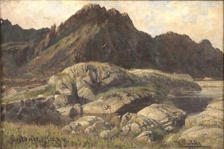 Keywords: Hermann Eschke - Svolvaer.jpg Artwork Creator Hermann Eschke 1887-08-13 oil canvas cardboard cm 32 5 49 object history credit line signed and dated accession number http //www arcadja com/auctions/en/private/eschke_hermann/artworks/9220/0/ Mehlis Auktionen via ARCADJA auction results PD-old-100 Hermann Eschke Svolvær in art Landscape paintings of Norway Paintings of mountains of Norway 1887 paintings 1880s landscape paintings 19th-century landscape paintings of Norway Fløya Vågan Svolen |