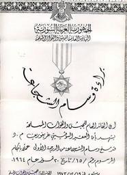 | Keywords: Hero of Syria citation.jpg ar وصف مجموعات الجدارة البطل الجمهورية العربية السورية ---- en Hero of Syria citation issued to a Soviet militaryman who fought Isaelis Americans and joint NATO force of British French and Italian military components in the Middle East and thus has been considered to be an eligible candidate to receive the supreme Syrian award ---- ru аг адной лист на советского военнослужащего участника боевых действий на Ближнем Востоке Ге оя Си ийской А абской Республики http //ak-group ru/forum/attachment php attachmentid 30911 d 1268487029 Hero of Sirya citation 22px en President of Syria President of the Syrian Arab Republic President of the Syrian Arab Republic circa 1970 1980 s PD-Syria Orders decorations and medals of Syria Arab-Israeli conflict Documents of Syria Soviet experts in Arabic Armies |