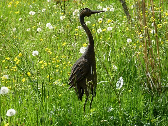 Keywords: heron metal metal figure art deco decoration meadow flower meadow garden front yard idyll sculpture motif sheet fig artwork