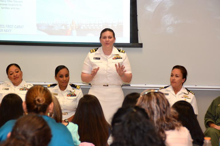 MAKE A MEME View Large Image Week 151007-N-ND850-190.jpg en EDINBURG Texas Oct 7 2015 Chippewa Falls Wis native Lt Cmdr Jamie Erickson operations officer with Navy Recruiting District San Antonio speaks to young Latinas and their mothers about life in the U S Navy ...