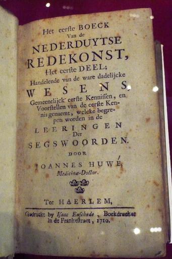 | Keywords: Het eerste boeck van de nederduytse redenkonst - Johannes Huwé gedrukt door Isaac Enschedé in de Frankestraat 1710.jpg Exhibition about Haarlem printing company Joh Enschedé in St Janskerk Haarlem by North Holland archives <br> Het eerste boeck van de nederduytse redenkonst book by Johannes Huwé and printed by Isaac Enschedé in the Frankestraat Haarlem in 1710 Photo of object 1710 Joh Enschedé PD-old-100 Museum Enschedé Haarlem Izaak Enschedé | ||||