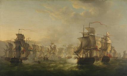 Keywords: Het treffen tussen de Hollandse en de Engelse vloot tijdens de tocht van de Hollandse flottielje naar Boulogne, 1805 Rijksmuseum SK-A-1394.jpeg accession number SK-A-1394 nl Het treffen tussen de Hollandse en de Engelse vloot tijdens de tocht van de Hollandse flottielje naar Boulogne Vervaardigd te Dordrecht in opdracht van het Ministerie van Marine De Bataafse Republiek droeg in de jaren 1803-1805 bij aan de samenstelling van de Franse invasievloot te Boulogne naar het denkbeeld van de Franse marinescheepsbouwer Groignard opgericht Verschillende eskaders vertrokken daarom vanuit Vlissingen op weg naar de hoofdmacht te Boulogne wat de Engelsen telkens trachtten te verhinderen Collection schilderijen; marinemodellenkamer drager Height cm 95 drager Width cm 159 exhibition history Institution Rijksmuseum Technique oil canvas object history Acquisition 1883 object type Potential derivatives exist check http //commons wikimedia org/w/index php search Rijksmuseum+SK-A-1394 this search PD-US PD-old-100 Data and photography rights All data and all images made available through the API are either in the public domain or are subject to a CC0 license https //www rijksmuseum nl/en/api/terms-and-conditions-of-use cc-zero place of creation http //www rijksmuseum nl/collectie/SK-A-1394 Het treffen tussen de Hollandse en de Engelse vloot tijdens de tocht van de Hollandse flottielje naar Boulogne 1805 Q17324080 Uploaded with GWToolset Het treffen tussen de Hollandse en de Engelse vloot tijdens de tocht van de Hollandse flottielje naar Boulogne 1805 Rijksmuseum SK-A-1394 http //www rijksmuseum nl/media/assets/SK-A-1394 Images uploaded by Fæ Images from the Rijksmuseum Paintings by Martinus Schouman in the Rijksmuseum Amsterdam Batavian Republic Martinus Schouman |