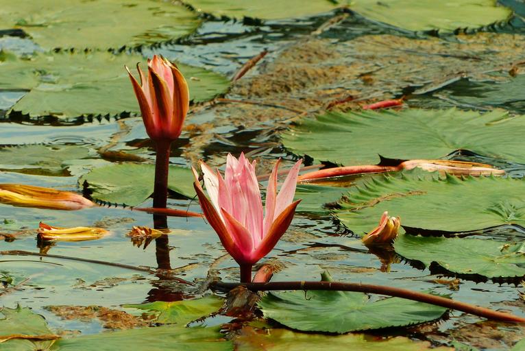 Keywords: heviz hungary thermal spring spa water lilies purple aquatic plant blossom bloom nuphar lutea water teichplanze green close