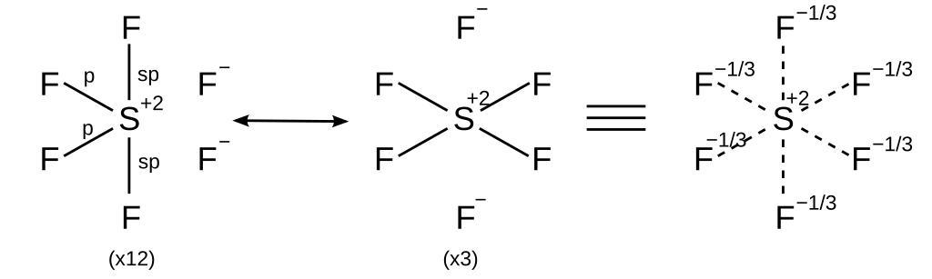 Keywords: Hexa sulf.svg en Resonance structures of Sulfur Hexafluoride with orbitals labelled own Officer781 2013-03-16 Hypervalent compounds