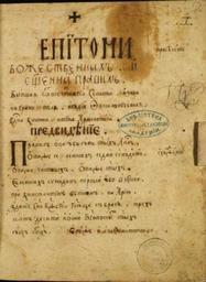 Keywords: Hexabiblos - Constantine Harmenopoulos - 1706 - Moscow - first page.png en Front page of the Procheiron or Hexabiblos of Constantine Harmenopoulos 1320 - 1380/1385 Moscow 1706 edition by Daniel Matveev 1st translation in Russian from Byzantine Greek Hexabiblos was a Byzantine legal treatise of the 14th century that continued to be widely used in the Balkan lands throughout the later Ottoman Empire's presence At 1828 it was adopted by the newly founded Greek state as the state's civic code where it remained so until 1946 el Η αρχική σελίδα της του Προχείρου ή Εξάβιβλου του Κωνσταντίνου Αρμενό ουλου 1320 - 1380/1385 έκδοση του 1706 στην όσχα α ό τον Δανιήλ ατβίεβ μετάφραση στα νέα ελληνικά Η Εξάβιβλος ήταν μια Βυζαντινή νομική ραγματεία η ο οία συνέχισε να χρησιμο οιείται ευρέως στα Βαλκάνια κατά τη διάρκεια της μετέ ειτα Οθωμανικής αυτοκρατορίας Το 1828 το έργο αυτό υιοθετήθηκε ως ο νομικός κώδικας του νεοιδρυθέντος Ελληνικού κράτους ό ου και αρέμεινε σε ισχύ ως το 1946 ru Епитоми божественных и священных п авил бывшая от всечестнаго севаста и законох анителя и судии фессалоническаго господина Константина А менопола - 1706 - Даниил атвеев 1706 http //old stsl ru/manuscripts/medium php col 5 manuscript 192 pagefile 192-0001 Constantine Harmenopoulos original Daniel Matveev ДА ИИЛ АТВЕЕВ editor other versions Custom license marker 2015 02 15 PD-old-100-1923 Uploaded with UploadWizard Byzantine writers Law books Books in Russian |