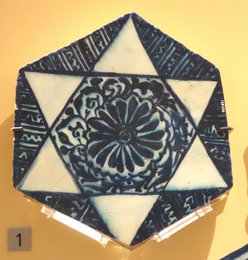 | View Original: | Hexagonal tile with a star and lotus, Syria, Damascus, c. 1420, underglaze-painted stonepaste - Royal Ontario Museum - DSC04777.JPG (2750x2883) | |||