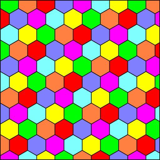 Keywords: Hexagonal tiling 7-colors.svg Hexagonal tiling rotational symmetry coloring own 2014-02-24 Life of Riley other fields Basis This image is based upon and is a vector version of File Hexagonal tiling 7-colors png by User Tomruen PNG Basis 150px Remarks valid SVG Inkscape-hand Order-3 hexagonal tiling |