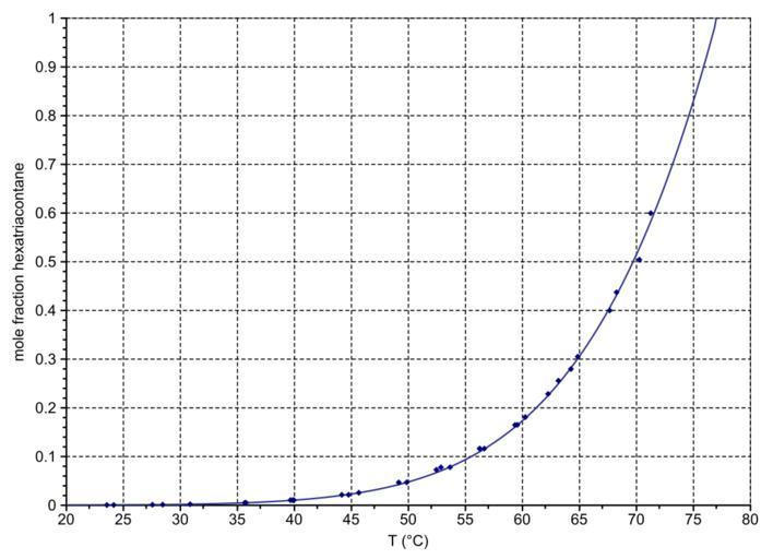 Keywords: Hexatriacontane solubility in n-heptane.svg Solubility of hexatriacontane in n-heptane Löslichkeit von Hexatriacontan in n-Heptan own Steffen 962 2011-11-03 Data from Roberts K L ; Rousseau R W ; Teja A S Solubility of Long-Chain n-Alkanes in Heptane between 280 and 350 K in J Chem Eng Data 39 1994 793-795 Cc-zero Alkanes Solubility |