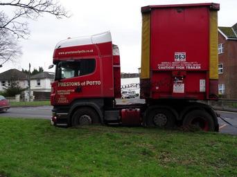 View Original:HGV_Stuck_in_mud._Blocking_road_in_Tunbridge_Wells._Pulled_free_by_second_HGV..jpg (5184x3888)