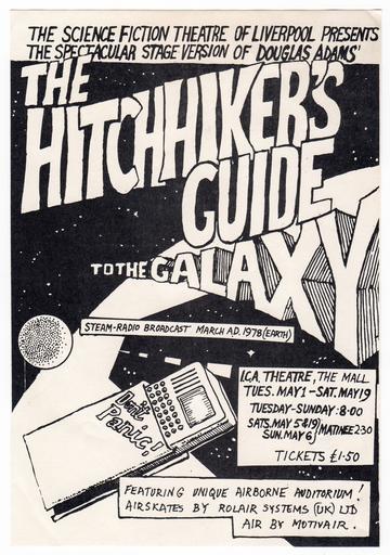 Keywords: HHGTHG 1979 ICA Stage Production Flyer.jpg en Flyer for the 1979 stage production at the ICA of The Hitchhiker's Guide To The Galaxy 2016-09-13 19 49 47 This is a scan from my personal collection of theatre memorabilia This promotional item was given to me personally by Ken Campbell director of the show in May 1979 Unknown designer working for Ken Campbell's Science Fiction Theatre of Liverpool other versions 51 506183 -0 13105 cc-zero Playbills Science fiction Theatres in London Scanned with Epson Expression Premium XP-800 |