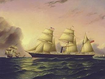 Keywords: Hibernia (Cunard).jpg Artwork Creator James E Buttersworth en James Edward Buttersworth's painting of the RMS Hibernia british steamer for the Cunard Line fr Peinture de James Edward Buttersworth représentant le RMS Hibernia paquebot transatlantique britannique de la Cunard Line s 1850 oil canvas cm 45 72 60 96 accession number object history credit line en At the end of 1847 the British Government-backed and heavily Subsidized Cunard Line moved to inaugurate a regular scheduled steam packet service direct between Liverpool and New York and on December 29 1847 the HIBERNIA of 1 422 tons built in 1843 reached New York from Boston to be ready to commence service by sailing from New York to Liverpool on Saturday January 1 1848 HIBERNIA had a speed of 9 1/2 knots http //www questergallery com/exhibitions/buttersworth/buttersworth html questergallery com PD-old-100-1923 1894 James E Buttersworth Hibernia ship 1842 19th-century sailing ships in paintings |