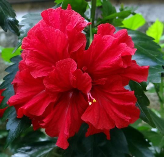 Keywords: hibiscus-double red flower china rose rosa sinensis india dharwad flora