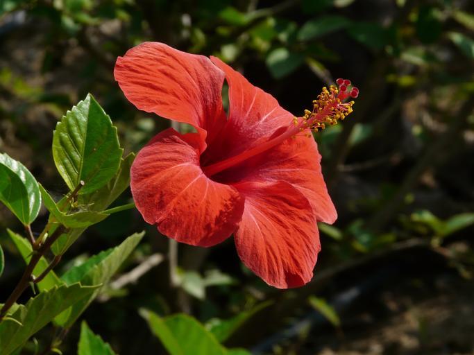 Keywords: hibiscus marshmallow mallow malvaceae ornamental plant ornamental flower blossom bloom flower red plant hibiscus flower close petals stamens filigree stamp pollen