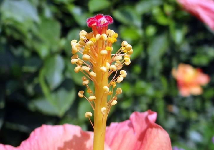 Keywords: hibiscus peach flower stamen style stigma rosa sinensis china rose flora dharwad india
