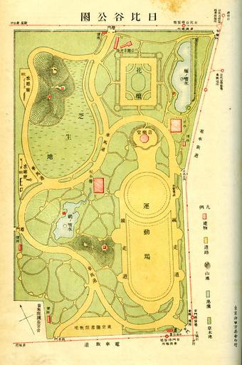 Keywords: Hibiya Park Map 1907.jpg ja 明治時代の日比谷公 案内図 運動場のやや上に音楽堂 京案内 上巻 京市市史編纂係(編) 1907年(明治40年)4 裳華房 p 404と405の間の図版 from http //www ndl go jp/scenery/map/hibiyakoen_map html here 京市市史編纂係 1907-04 PD-Japan Hibiya Park
