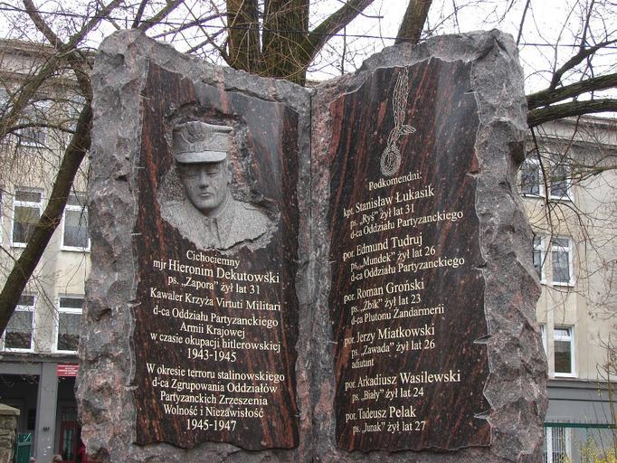 Keywords: HieronimDekutowski10.JPG Opis / Summary Hieronim Dekutowski Monument in Lublin Poland Pomnik poświęcony Hieronimowi Dekutowskiemu i jego podkomendnym znajdujący się przed Gimnazjum nr 9 w Lublinie prywatne archiwum / self-made 2008-04-03 Piotr Kononowicz 51 242255 22 553754 Monument to Hieronim Dekutowski and the Subordinates at Gymnasium nr 9 in Lublin |