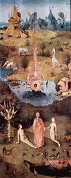 | Keywords: Hieronymus Bosch 014b.jpg Artwork Creator Hieronymus Bosch The Garden of Earthly Delights 1500-1505 oil panel cm 220 97 institution Prado Provenance by 1517 Henry III Count of Nassau 1538 inherited by William I Prince of Orange 1568 confiscated by Fernando Álvarez de Toledo 3rd Duke of Alba Date unknown acquired by Don Fernando 1591 bought by Philip II of Spain 1593 transferred to the Monasterio de El Escorial 1939 transferred to the Museo del Prado Madrid from the Escorial Yorck Inv nr 2823 Other versions <gallery> File Hieronymus Bosch - The Garden of Earthly Delights - The Earthly Paradise Garden of Eden jpg Brighter version of the painting </gallery> Histogram restoration Blurpeace Hieronymus Bosch 014 jpg PD-old-100 PD-Art-YorckProject 16th-century paintings of Adam and Eve Book of Genesis The Garden of Earthly Delights left panel 02 |