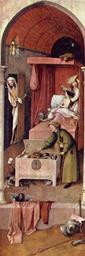 | Keywords: Hieronymus Bosch 050.jpg Jheronimus Bosch 050 jpg Artwork LangSwitch Der Tod und der Geizhals Death and the Miser La mort du pauvre Mors pauperis De dood van een vrek <ref>http //boijmans cultuurwijs nl/onderw/ckvbosch/6vrek1 htm CKV 1 project Jheronimus Bosch en navolgers</ref> Alternate titles LangSwitch Allegory of Avarice <br />Death and the Usurer De Dood van de vrek <ref>De Tolnay 1986; ISBN 9061131642 p 346 </ref> <br />Sterfbed van een vrek<ref>Tent cat Jheronimus Bosch 's-Hertogenbosch 1967 cat nr 51 </ref> oil panel cm 92 6 30 8 institution National Gallery of Art Object history by Other date ~ 1826 Private collection England <br /> by Other date ~ 1926 art dealer Highgate Village London by 1926 Raven Massy and Lester art dealers London by 1932 Asscher and Walker art dealers London by 1932 Baron Joseph Van der Elst 1896-1971 Brussels 1951 3 17 purchase Samuel H Kress Foundation New York Baron Joseph Van der Elst Brussels ProvenanceEvent 1952 gift NGA Washington D C by exchange The Yorck Project 10 000 Meisterwerke der Malerei DVD-ROM 2002 ISBN 3936122202 Distributed by DIRECTMEDIA Publishing GmbH 1952 5 33 LangSwitch c 1494 or later 1490-1500 Ca 1494 of later 1490-1500 Creator Hieronymus Bosch http //mail wikipedia org/pipermail/wikide-l/2005-April/012195 html Other versions <gallery> File Jheronimus_Bosch_050 jpg Version from deitchman com File DeathOfTheMiser BoschDrawing jpg Copy </gallery> PD-old-100 PD-Art-YorckProject LangSwitch Notes Noten <references /> Death and the Miser by Hieronymus Bosch |