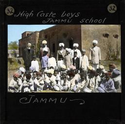 | Keywords: High Caste Boys Jammu School, Jammu, ca.1875-ca.1940 (imp-cswc-GB-237-CSWC47-LS10-032).jpg en <br> High Caste Boys Jammu School Jammu ca 1875-ca 1940 Group photograph of a class of high caste boys from Jammu school The boys are photographed outside and there is a red brick building in the background ; This belongs to a series of Church of Scotland Foreign Missions Committee lantern slides relating to Jammu City which is also known as the City of Temples A mission station occupied by Church of Scotland missionaries was founded here in the late 19th/early 20th century Jammu is also one of the three administrative divisions within Jammu and Kashmir the northernmost state in India Photographer Unknown Filename imp-cswc-GB-237-CSWC47-LS10-032 tif Coverage date 1875/1940 Part of collection International Mission Photography Archive ca 1860-ca 1960 Geographic subject region Jammu and Kashmir Type images Part of subcollection Photographs from the Centre for the Study of World Christianity University of Edinburgh U K ca 1900-ca 1940s Repository name Centre for the Study of World Christianity Archival file impaunpub_Volume7/1749 url Repository address The University of Edinburgh School of Divinity New College Mound Place Edinburgh EH1 2LX United Kingdom Geographic subject country India Format aacr2 1 lantern slide 8 x 8 cm Geographic subject continent Asia Rights Contact the repository for details Part of series In the Temple City of Jammu LS10 Repository email divinity-CSWC ed ac uk Subject lcsh Keyword Children; Education; Social classes Date created 1875/1940 Publisher of the digital version University of Southern California Libraries Subject aat genre group portraits Format aat lantern slides Legacy record ID impa-m69300 Access conditions http //www ed ac uk/schools-departments/divinity/research/centres/world-christianity/collections-resources File GB 237 CSWC47/LS10/32 1875/1940 author http //digitallibrary usc edu/cdm/ref/collection/p15799coll123/id/64866 PD-old-70-1923 Magic lantern images Images from USC Digital Library uploaded by Fæ International Mission Photography Archive ca 1860-ca 1960 People of Jammu |