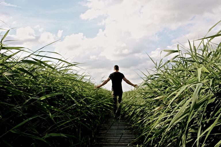 Keywords: high grass walk relax enjoy grasses nature promenade away relaxation recovery landscape go for a walk nature trail idyllic man