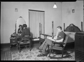 Keywords: High Point, North Carolina - Housing. Bedroom and living-room in company-owned home of workers in Highland Cotton... - NARA - 518522.jpg Scope and content General notes 518522 Local identifier 69-RP-249 Federal Works Agency Work Projects Administration National Research Project ca 1941 - ca 1942 NARA-Author Hine Lewis Wickes 1874-1940 Photographer 1122914 <br /> High Point Guilford county North Carolina United States North and Central America inhabited place 3362615 35 95 -80 <br /> Still Picture Records Section Special Media Archives Services Division NWCS-S National Archives at College Park 8601 Adelphi Road College Park MD 20740-6001 1936 - 1937 Record group Record Group 69 Records of the Work Projects Administration 1922 - 1944 Record group ARC 398 Lewis Hine Photographs for the National Research Project compiled 1936 - 1937 Series ARC 518291 File unit File unit ARC Variant control numbers NAIL Control Number NWDNS-69-RP-249 Other versions <gallery> File High_Point _North_Carolina_-_Housing _Bedroom_and_living-room_in_company-owned_home_of_workers_in_Highland_Cotton _-_NARA_-_518522 tif tif File High_Point _North_Carolina_-_Housing _Bedroom_and_living-room_in_company-owned_home_of_workers_in_Highland_Cotton _-_NARA_-_518522 jpg jpg </gallery> NARA-cooperation PD-USGov High Point North Carolina Houses in North Carolina