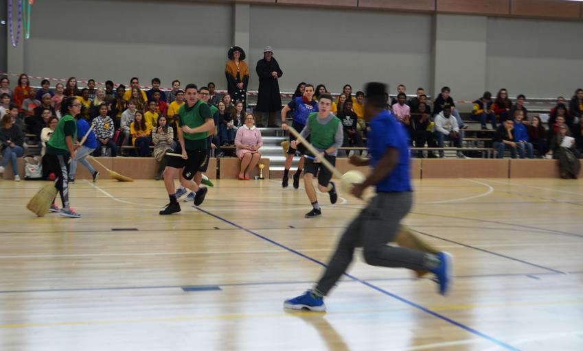 Keywords: sport court game team sport For one week, Ansbach Middle/High School was turned into "Hogwarts School of Witchcraft and Wizardry," based on J.K Rowling's Harry Potter books. The highlight and culmination of the week-long project, hosted as part of "Read across America Week," was a Quidditch tournament and the award ceremony for the house cup. (U.S. Army photos: Bianca Sowders, USAG Ansbach Public Affairs) For one week, Ansbach Middle/High School was turned into "Hogwarts School of Witchcraft and Wizardry," based on J.K Rowling's Harry Potter books. The highlight and culmination of the week-long project, hosted as part of "Read across America Week," was a Quidditch tournament and the award ceremony for the house cup. (U.S. Army photos: Bianca Sowders, USAG Ansbach Public Affairs)